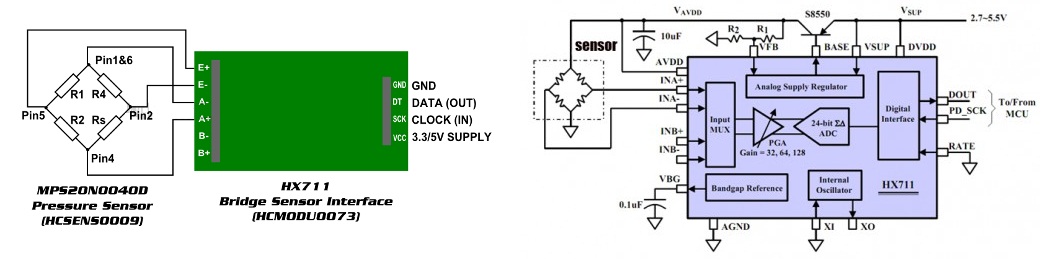 The module uses 24 high-precision A / D converter chip HX711, is for Designed specifically for high-precision electronic scales, two analog channel input, the internal integration of 128 programmable amplifier gain of. The input circuit can be configured for electrical bridge (bridge pressure as the pressure weighing) sensor mode is ideal for high-precision, low-cost sampling front-end module