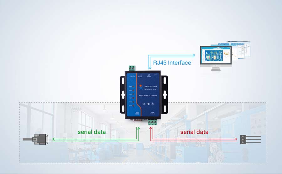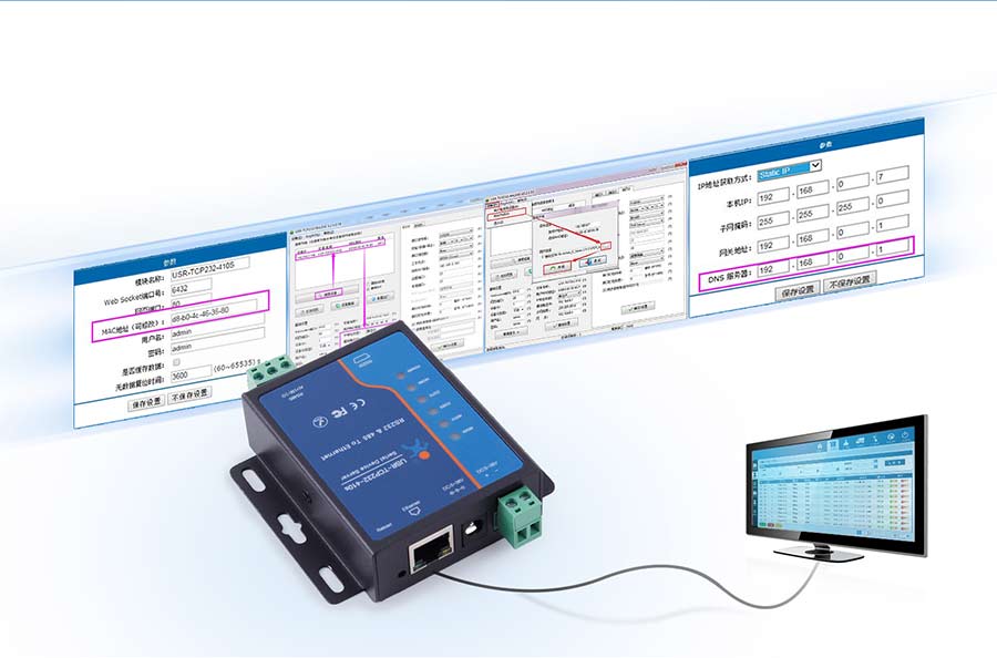 USR-TCP232-410s supports serial port to network, monitor the work of the equipment via TCP Server mode at any time.